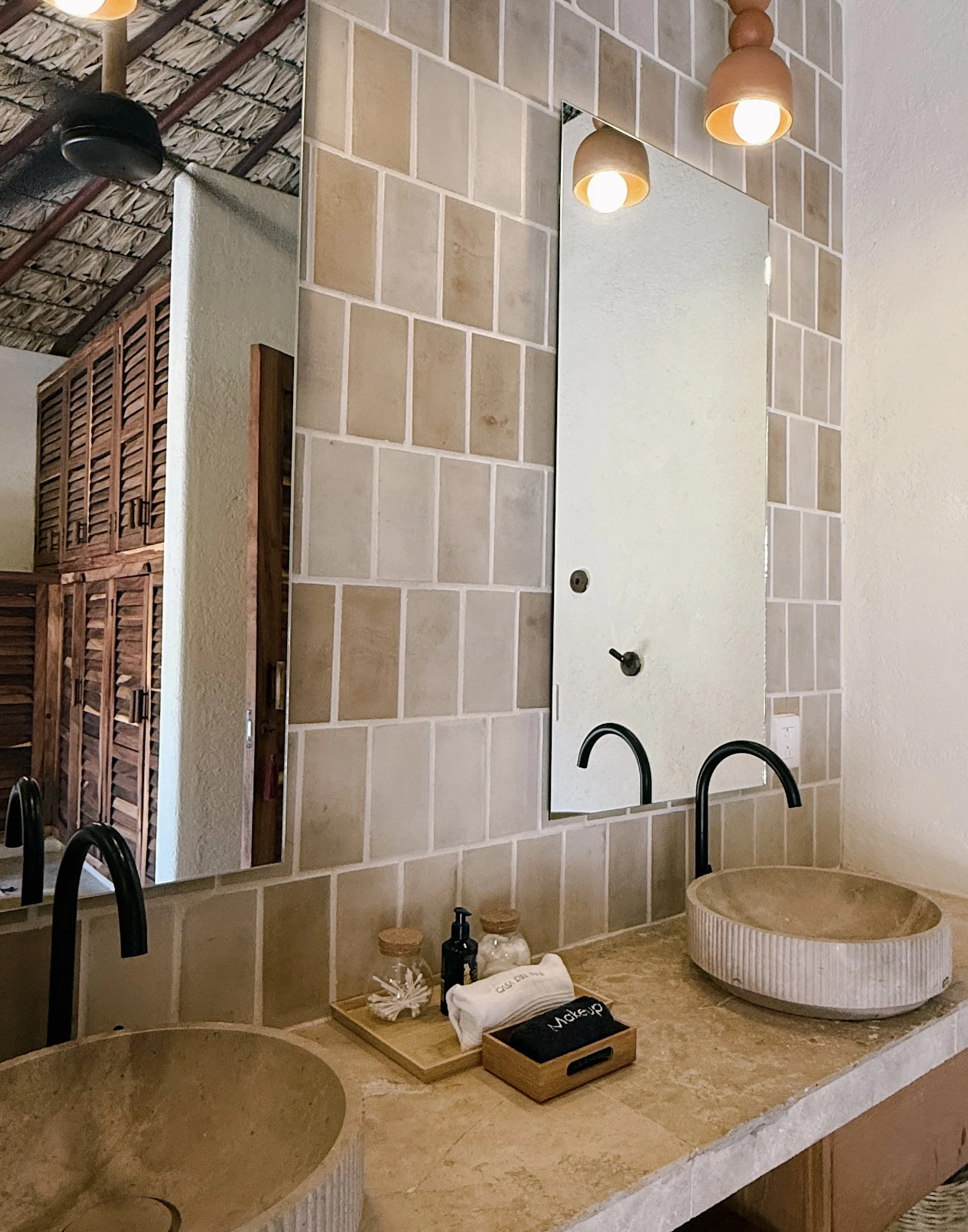 Each bedroom also has an en-suite bathroom featuring handmade Oaxacan tiles, a romantic outdoor bathtub, 100% cotton mongrammed bathrobes, 100% organic natural bath soap products by Laguna Cyprien.