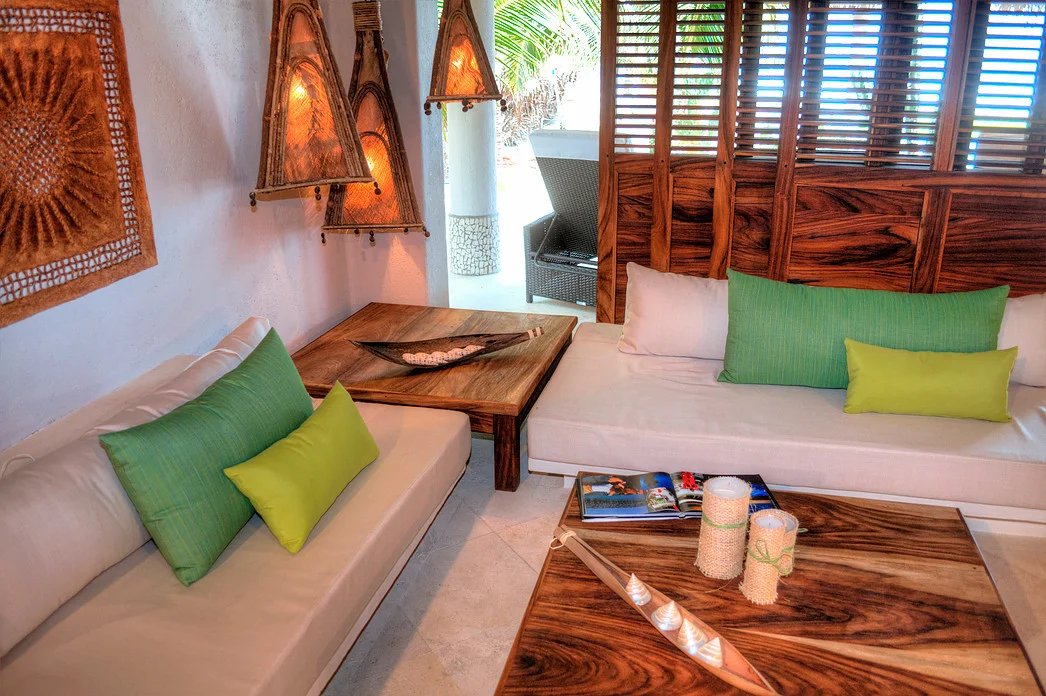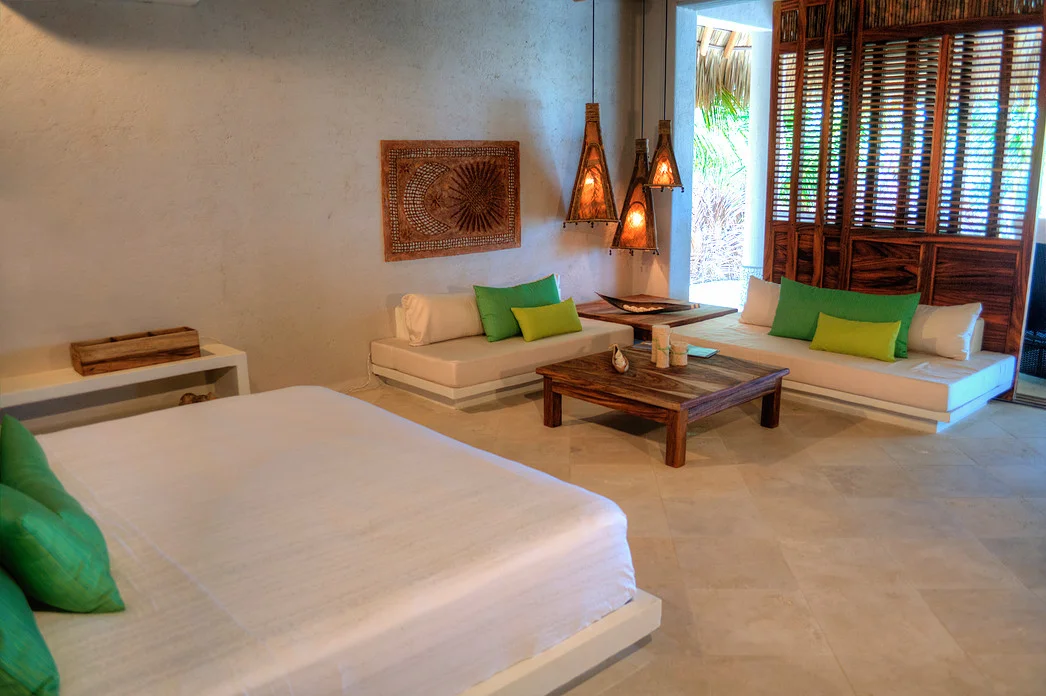 Each beachfront master bedroom has a king size bed and a large private seating area.